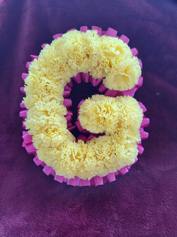 Choice of base colours with your choice of ribbon edge and focal flower spray.