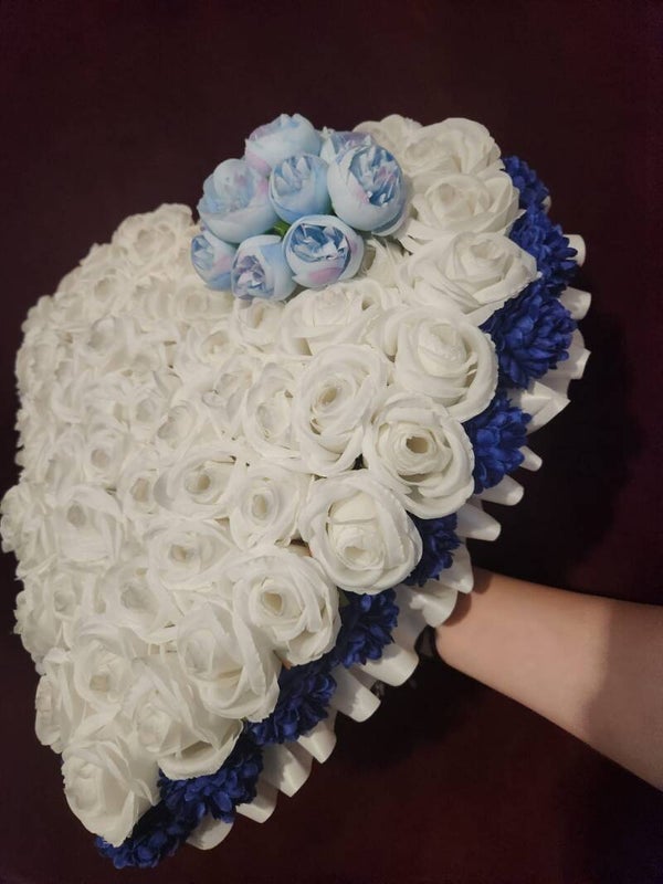 Gorgeous luxury tribute. Made with your personal choice of roses for the base, additional flowers for the edging, spray choice and choice of ribbon.
